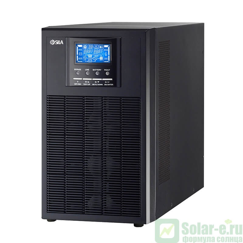 ИБП SILA W-PRO 6K 6кВа (Онлайн) с выходной мощностью 5400Вт это источник бесперебойного питания с двойным преобразованием энергии предназначенный для бесперебойного питания оборудования с высокой плотностью мощности: серверов, сетей голосовой связи и передачи данных, медицинских лабораторий и небольших промышленных установок.Выходная мощность 5400 ВТ позволит устройству продолжать работу в течение 12-ти минут при неполадках электросети: перебоев напряжения, помехах, коротких замыканиях. Пользователь имеет возможность завершить работу системы, сохранив нужные данные. Наличие USB и RS-232 портов позволит Вам подключить устройство к персональному компьютеру и установить оптимальные параметры для его эффективной работы. А наличие SNMP модуля даст возможность удаленного мониторинга и администрирования.Информация об операциях устройства отображается на ЖК-экране.
