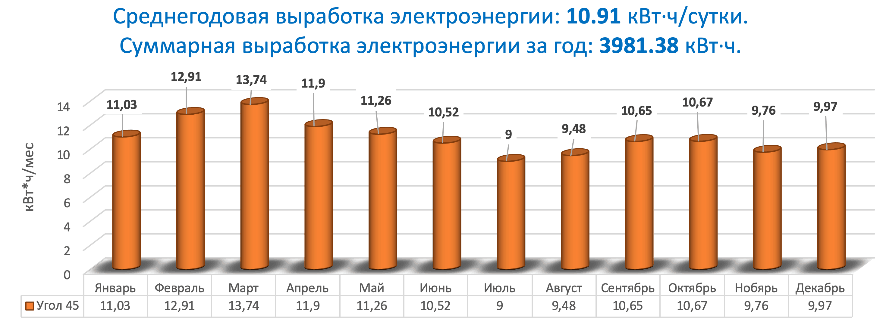 - Выработка согласно статистическим данным - до 13,6 кВт*ч/сутки